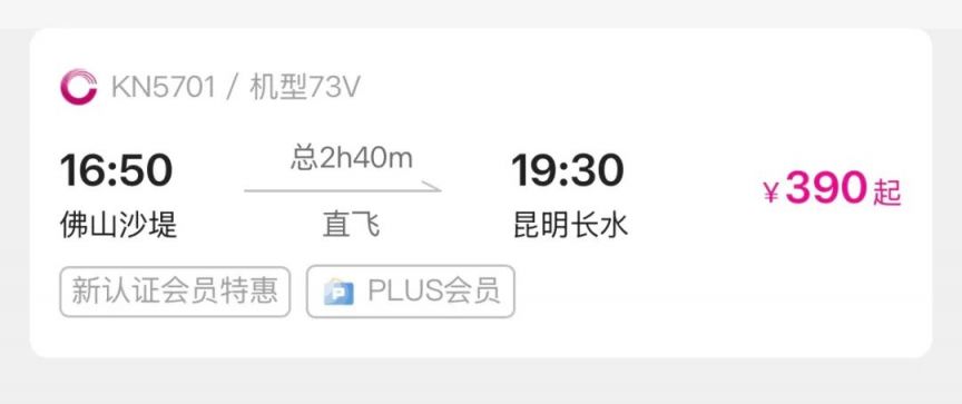 3.恢复佛山=昆明直飞航线,计划班期为每天1班