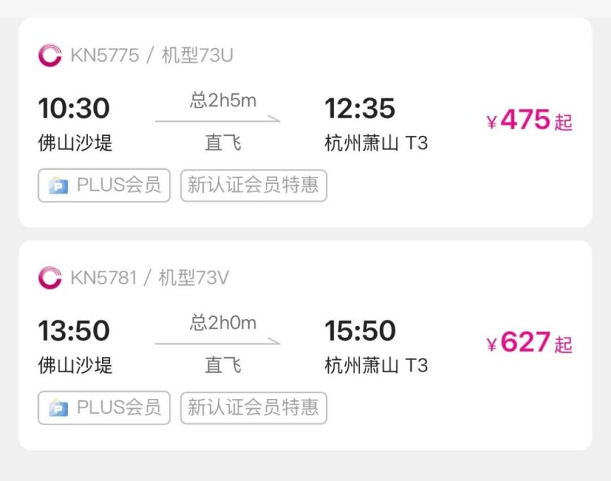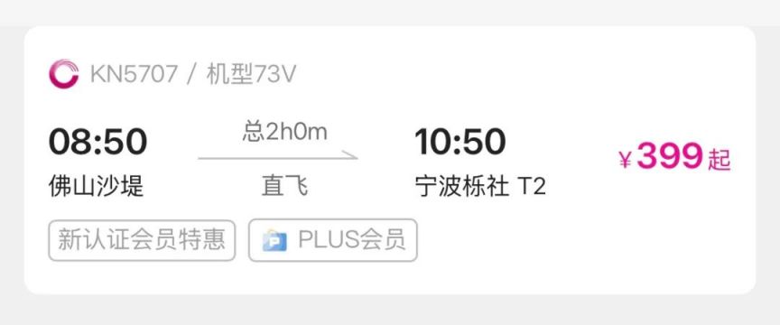 2.恢复佛山=宁波的直飞航线,计划班期为每天1班佛山08:50-宁波10:50宁波11:45-佛山14:00(周一、三、五、七)宁波12:15-佛山14:20(周二、四、六)