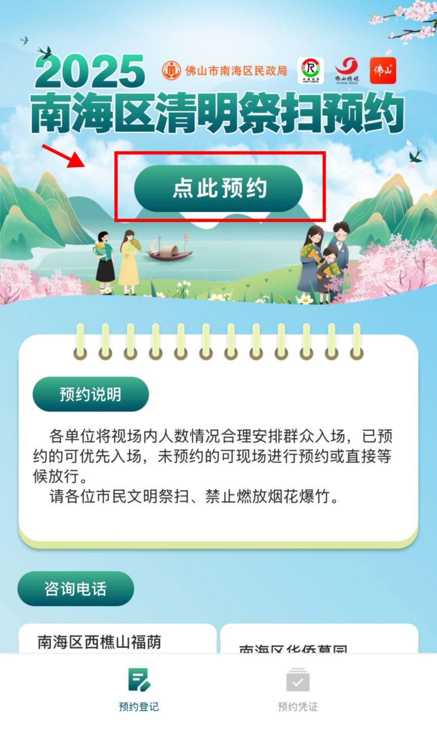 1. "佛山市民政局官方网站":访问佛山市民政局官方网站,查找清明扫墓预约的相关信息。 2. "佛山市民政局微信公众号":关注“佛山市民政局”微信公众号,通过菜单或者消息咨询预约流程。 3. "佛山市民政局服务热线":拨打佛山市民政局服务热线进行咨询和预约。