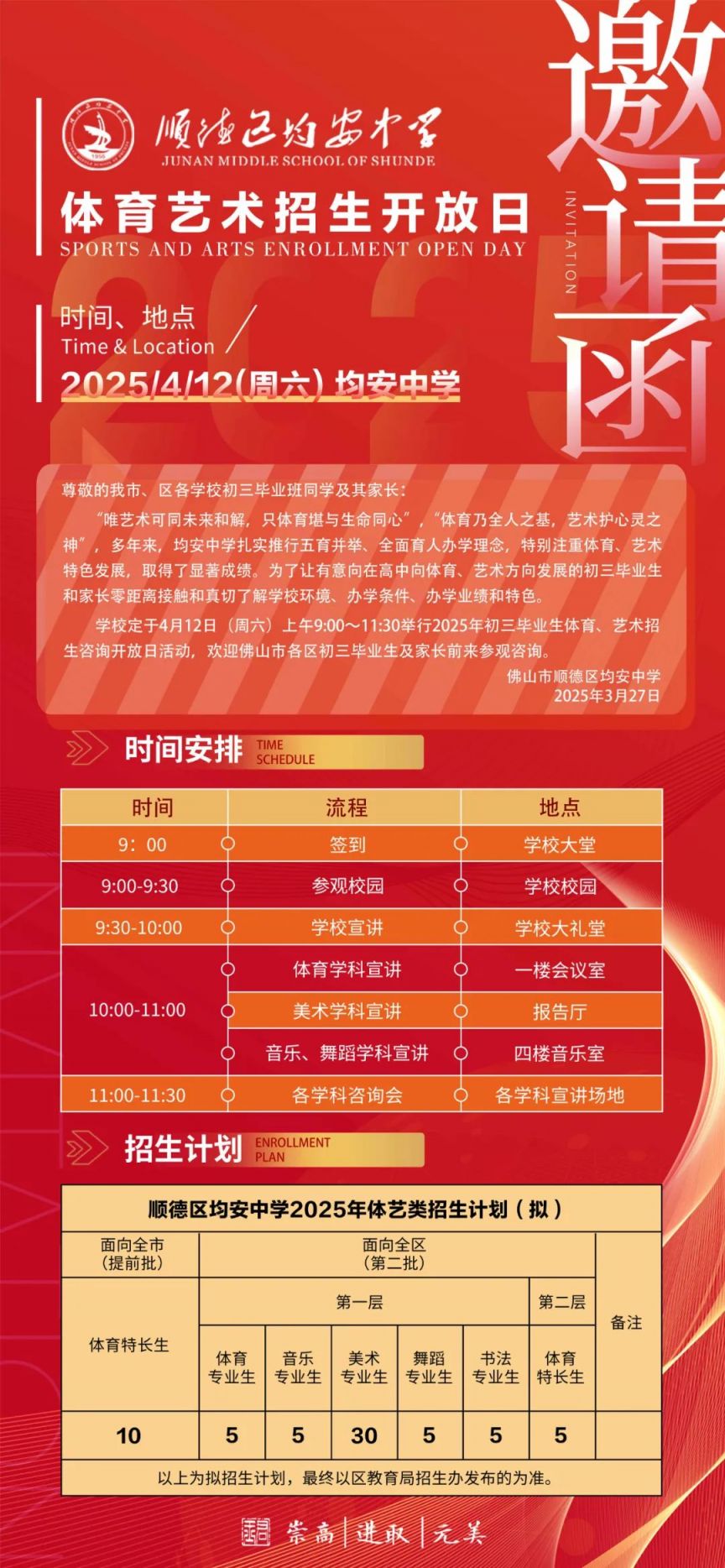 【2025年顺德区均安中学体艺特长生校园开放日详细安排】