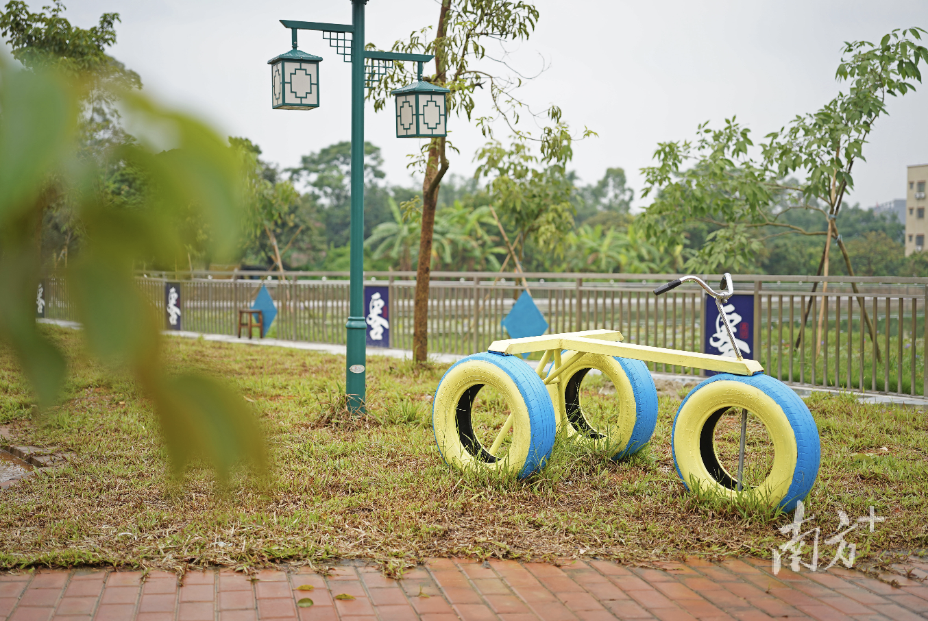 房前屋后的荒地改造成为带有座椅和打卡娱乐设施的休闲小公园。